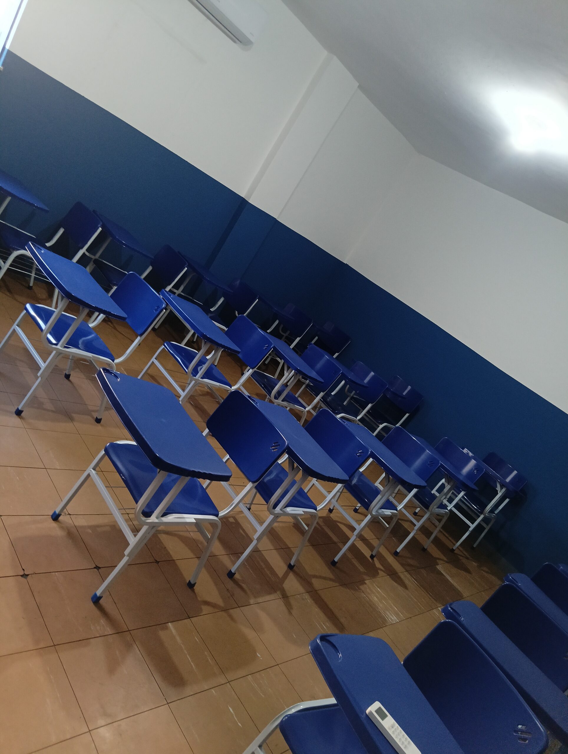 Cadeiras Universitária e ar condicionado em todas as salas