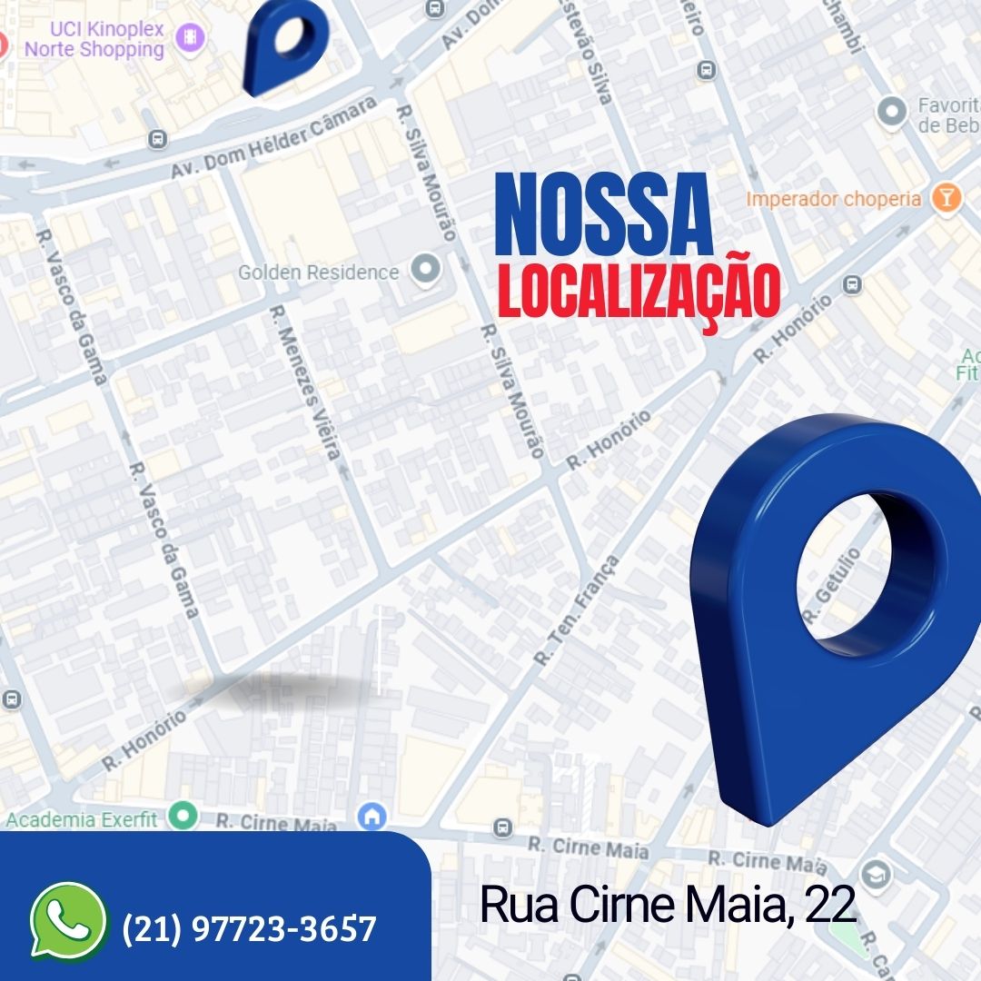 De fácil localização ficamos a poucos metros do NorteShopping, no Bairro do Cachambi, zona Norte do Rio de Janeiro.